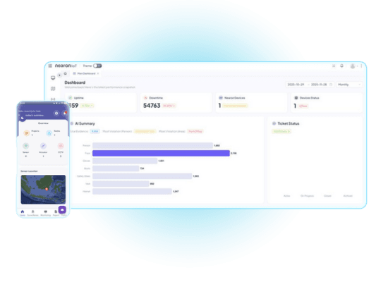 Nearon IoT is the technological core that connects all Nearon solutions. It integrates sensors, gateways, and dashboards into one system that captures real-time data and transforms it into actionable insight.